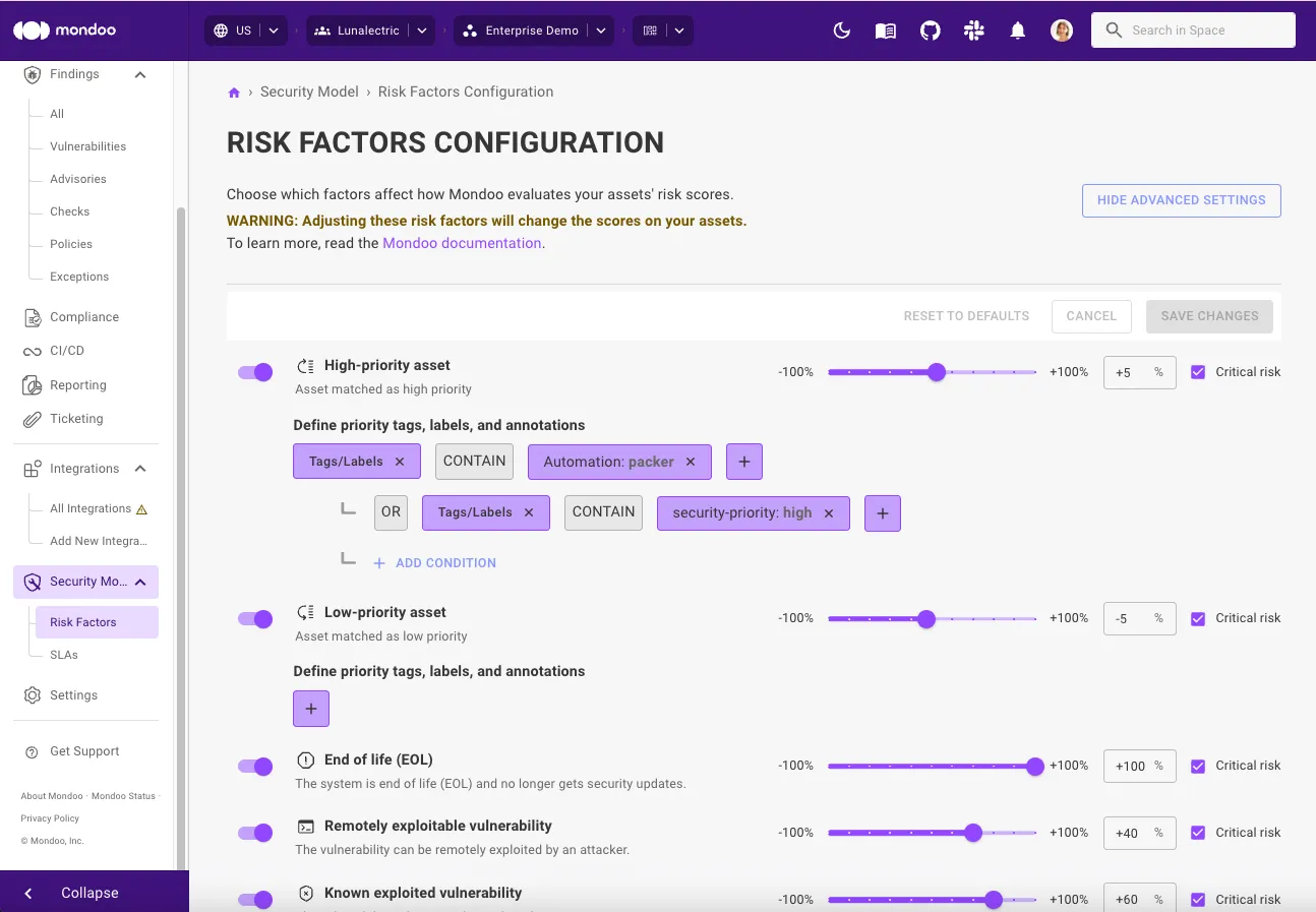 - Scoping for higher accuracy: Not all organizations have the same risk appetite. Not all assets are of the same importance. By allowing users to tag assets according to criticality, set exceptions, and customize prioritization settings, organizations can ensure that they are focused on what matters most to them.