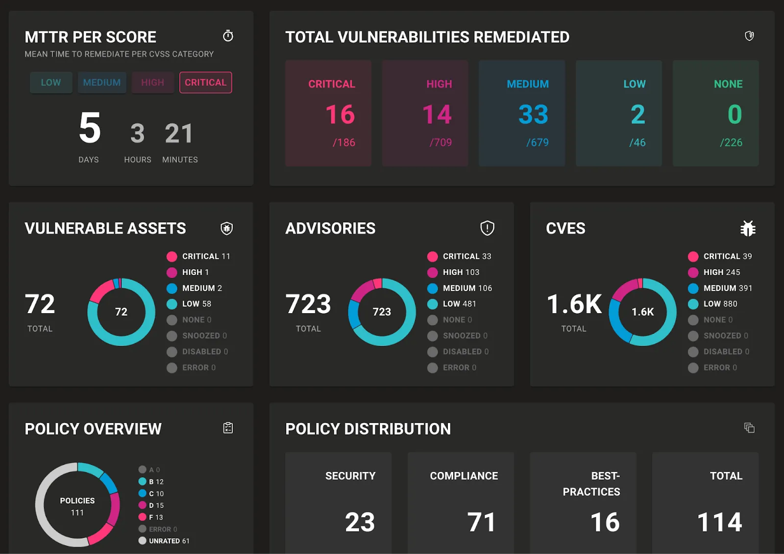• On dashboards and other pages, we display final scores that are adjusted per Mondoo's contextual risk factors (instead of just base scores).