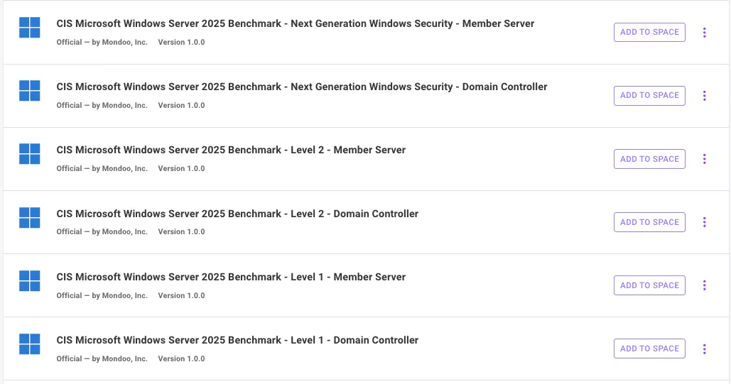 We added 6 all-new CIS benchmark policies for the latest Windows Server 2025 release: