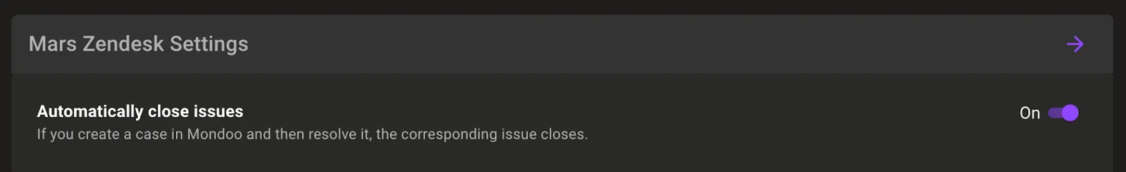 You can choose whether to automatically close a Mondoo-created ticket or issue in Jira, Zendesk, GitHub Issues, or GitLab Issues when you close the corresponding case in Mondoo.