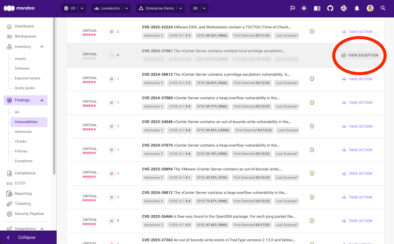 - Visible: Exceptions should not be a way to hide problems. That’s why Mondoo clearly shows when an exception has been set for a finding.
