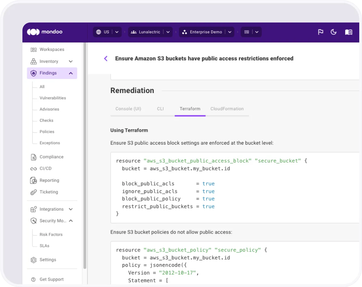 Guided remediation, code snippets, and synced integrations with ticketing systems such as Jira, Zendesk, and Azure DevOps greatly accelerate mean time to resolution.