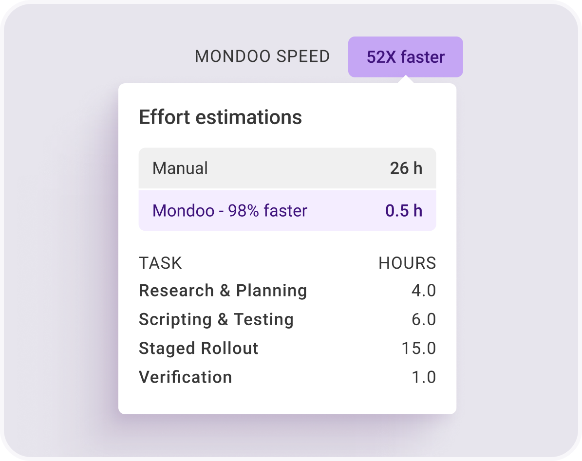 Mondoo uses a fully transparent remediation system leveraging tried and tested, easy to use, open source technologies that allow engineers to see exactly what is happening and rollback if necessary.